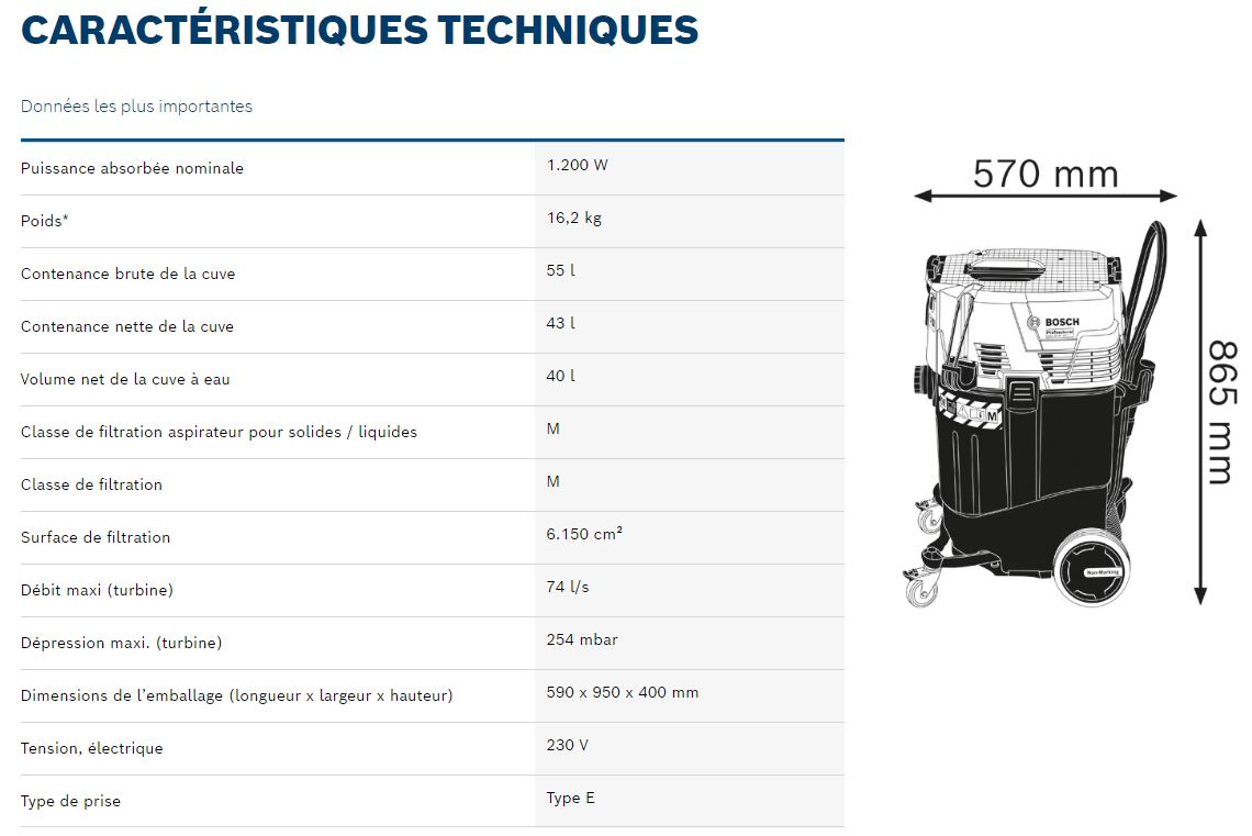 - Excellent pouvoir aspirant grâce à une puissante turbine de 1 380 W produisant une dépression très élevée de 254 mbar